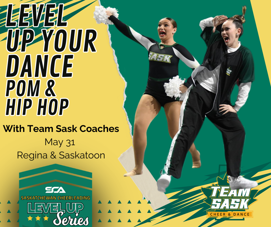 Level up your performance quality with the SCA’s Level Up Your Dance camp—designed for athletes looking to build confidence, technique, and style in both pom and hip hop. This session focuses on developing strong foundational skills, including motion precision, musicality, performance quality, and execution, while learning dynamic choreography in a high-energy, supportive environment. Athletes will work closely with experienced coaches and Team Sask leaders, gaining valuable feedback and tools to elevate their presence on the floor. Whether preparing for tryouts or refining current skills, this camp is the perfect opportunity to grow as a well-rounded, confident performer.
